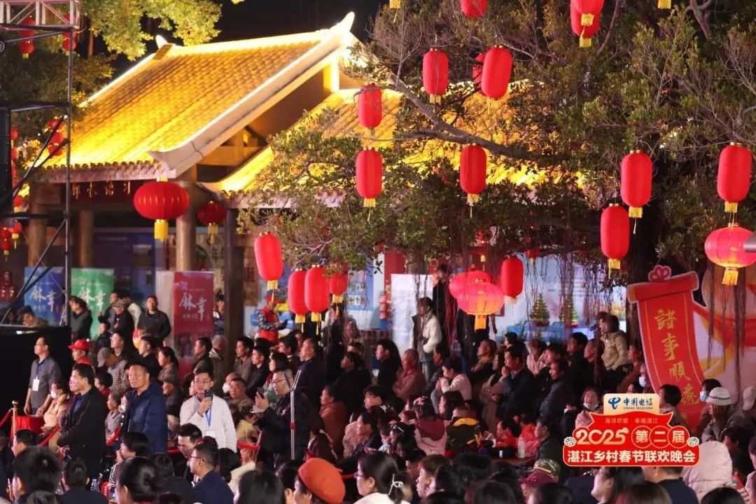 当晚,湛江云媒APP、湛江日报视频号、抖音号、湛江晚报小湛同学视频号、湛江唯食网视频号、湛江广电网络视频号、抖音号、天翼数字乡村公众号、赤坎发布视频号、抖音号、吴川融媒视频号、抖音号、APP和遂溪融媒APP及网络达人等多平台联合直播,实现“电视大屏+手机小屏”全覆盖,各直播间总观看人数近千万人次。让本届村晚实现了出彩又出圈,不仅展现了湛江 “百千万工程” 的阶段性成果,更让“村晚 IP”进一步深入人心,为湛江乡村全面振兴注入强大动力。