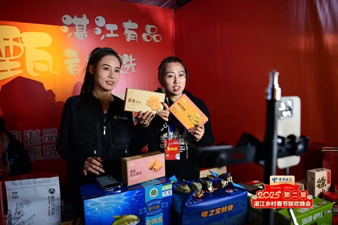 现场的农文旅展区同样人气爆棚。皮脆肉香的麻章烧猪、清香软糯的艾叶饼、饱含美好寓意的年糕等麻章特色美食一一亮相,吸引着观众们驻足。海红米、释迦果、圣女果等湛江特色水果,景田矿泉水、湛江生蚝、年糕、腊肠等各类“明星湛品”也纷纷出圈,为观众带来一场味觉与视觉交融的双重盛宴。